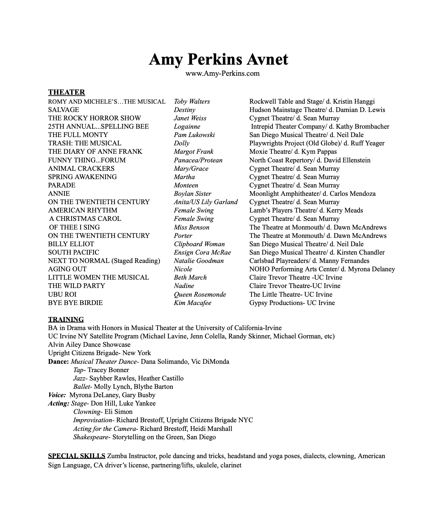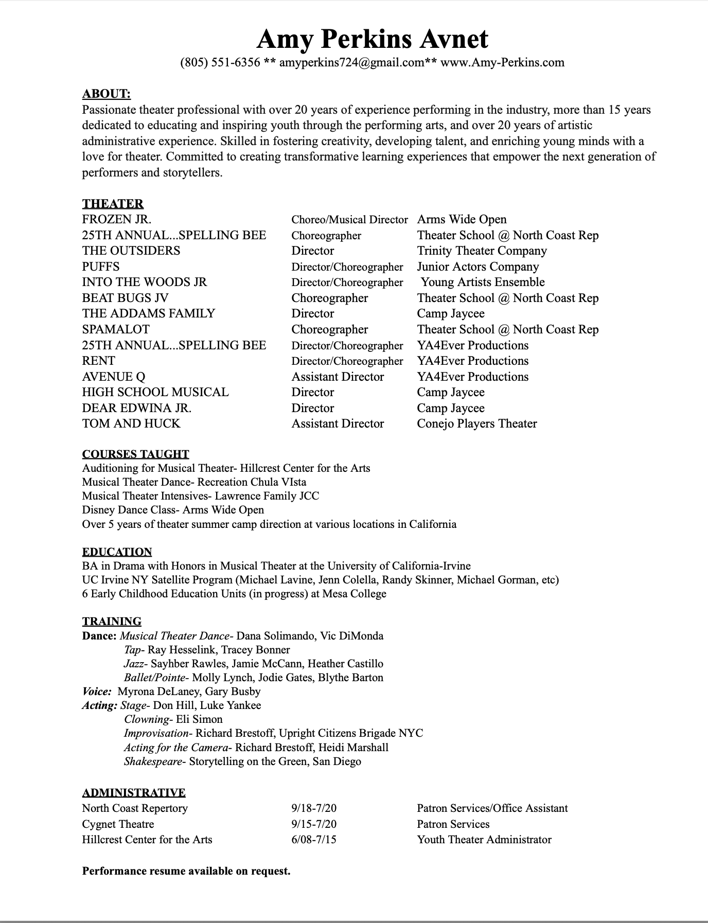 Theater Resume:
